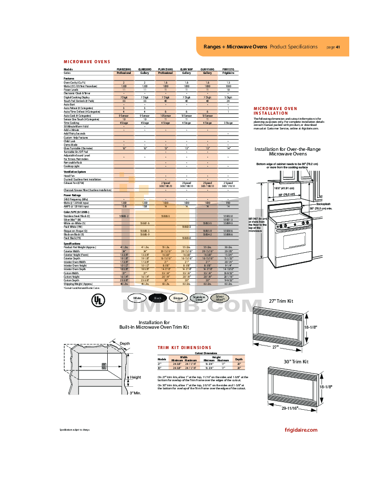 Microwave Oven FMV157GC Stainless Steel with fast shipping and top-rated customer service Below you will find the product specifications and the manual specifications of the Frigidaire FMV157GC We have 2 Frigidaire FMV157GC - Microwave manuals available for free PDF download: Service Manual, Use & Care Manual